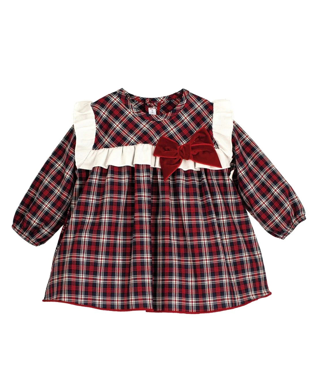 Abito in fantasia Natalizia neonata, in fantasia tartan. Fiocco in velluto laterale in rilievo, chiusura sul retro con bottoni, vestibilità regolare.