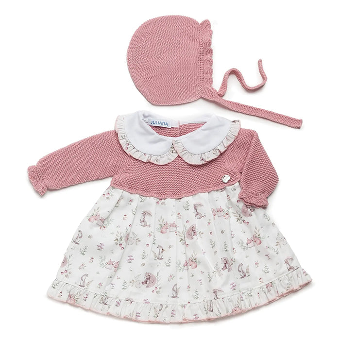 Abito Juliana unica variante di colore Maquillaje. Colletto e fondo dell’abitino a fantasia. Chiusura sul retro con bottoni.