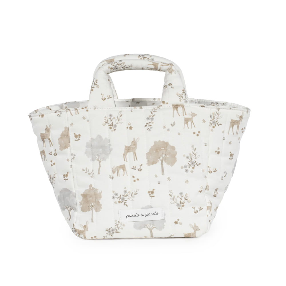 Il beauty case per bebé Nara di Pasito a Pasito, realizzato in 100% cotone con una delicata stampa di cervi e alberi in tonalità neutre, è una piccola borsa pensata appositamente per trasportare tutti i prodotti per la cura del bambino quando si è fuori casa. È un modello unico, dallo stile raffinato, progettato per adattarsi perfettamente alle esigenze quotidiane. Il suo design semplice, elegante e pratico offre uno spazio compatto ma ben organizzato, ideale per contenere gli elementi essenziali per l’igiene del bebé, come pettini, lozioni e altri piccoli oggetti che spesso si perdono all’interno della borsa maternità. Dispone di una chiusura con zip per un’apertura facile e veloce.