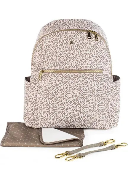 Zaino London Animal Print stampato in similpelle beige. Grande capacità di trasportare tutto ciò di cui tu e il tuo bambino avete bisogno. Tasche interne ed esterne per avere tutto a portata di mano e in ordine. Scomparto per laptop o tablet. Ha 2 grandi maniglie regolabili in modo da poterlo utilizzare appeso sul retro e altre due piccole maniglie in modo da poterlo appendere sul carrello del bambino. Si può lavare a mano o in lavatrice a 30º. I materiali utilizzati sono esenti di coloranti azoici, ftalati e sostanze nocive alla salute. Dimensioni: 30X38X14 cm.