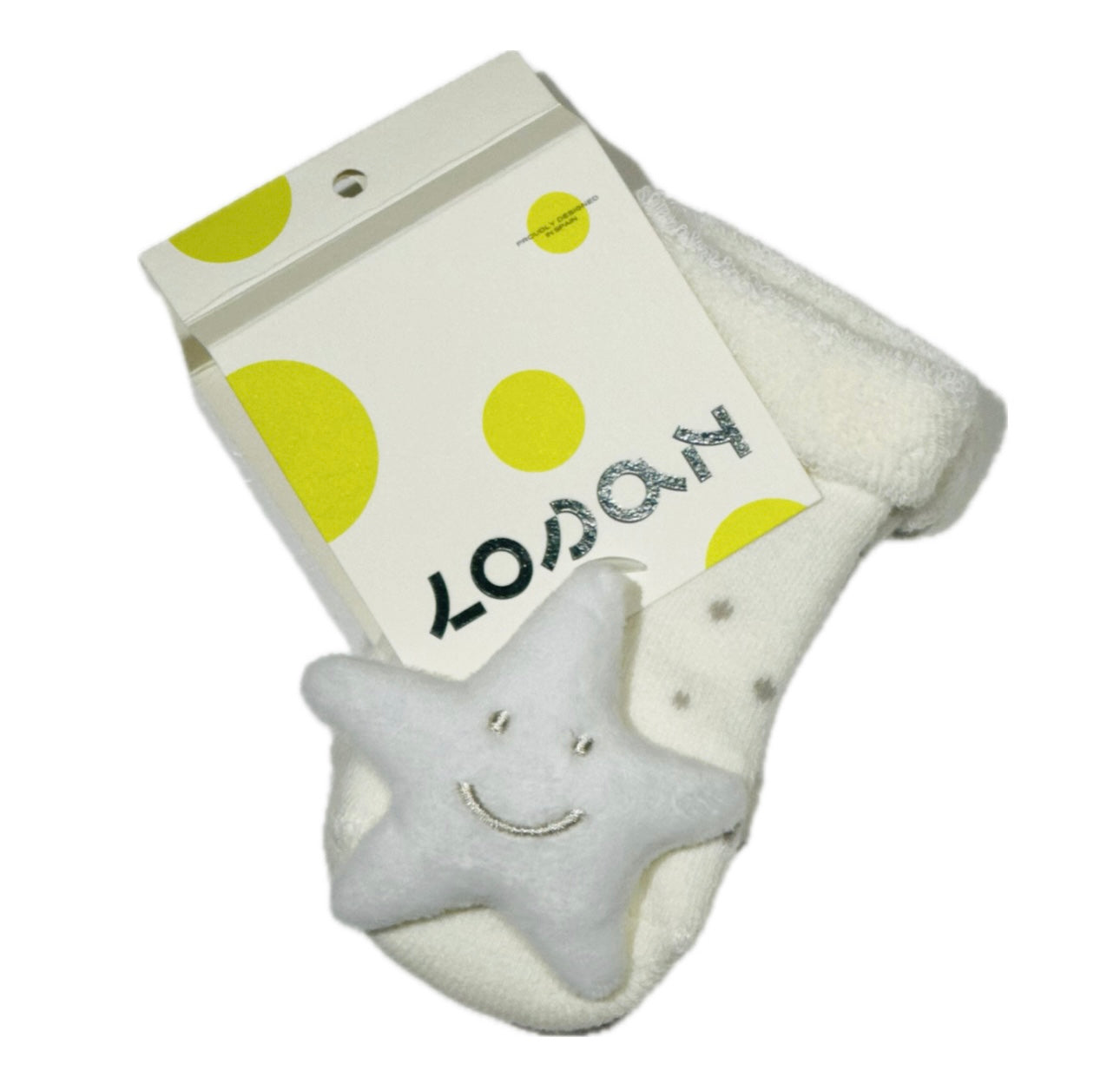 Calzino in cotone caldo , unica variante di colore Bianco, stella sul davanti in rilievo.