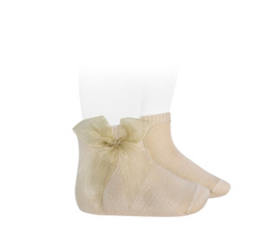 Calzino corto in cotone con fiocco in tulle disponibile in tre varianti di colore Rosa 526, Bianco 200, Lino 304, Nero 900.