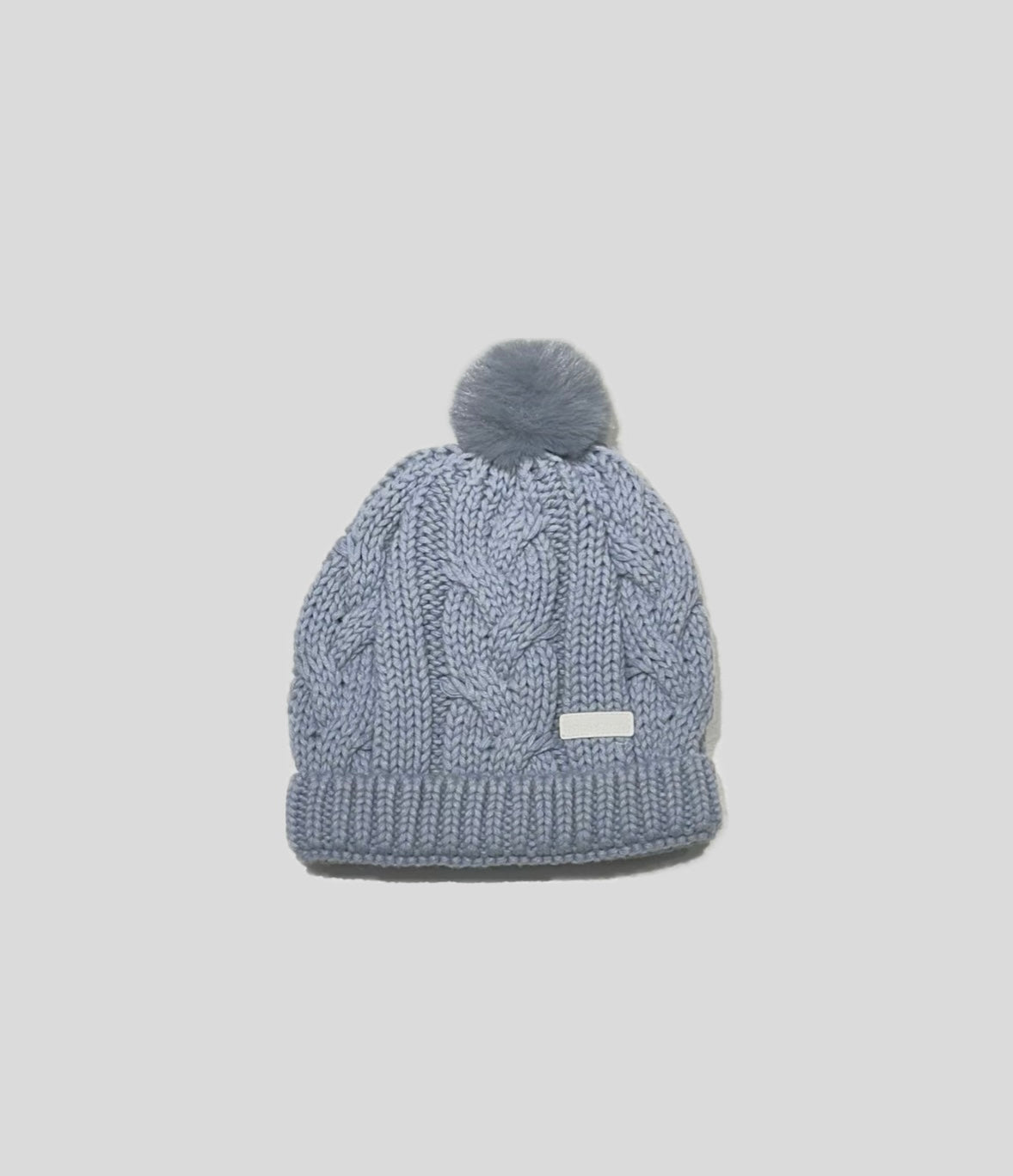 Cappello Minibanda Neonata/o realizzato con trama intrecciata disponibile in tre varianti di colore Rosa, Bianco, Azzurro. Realizzato con pon pon.