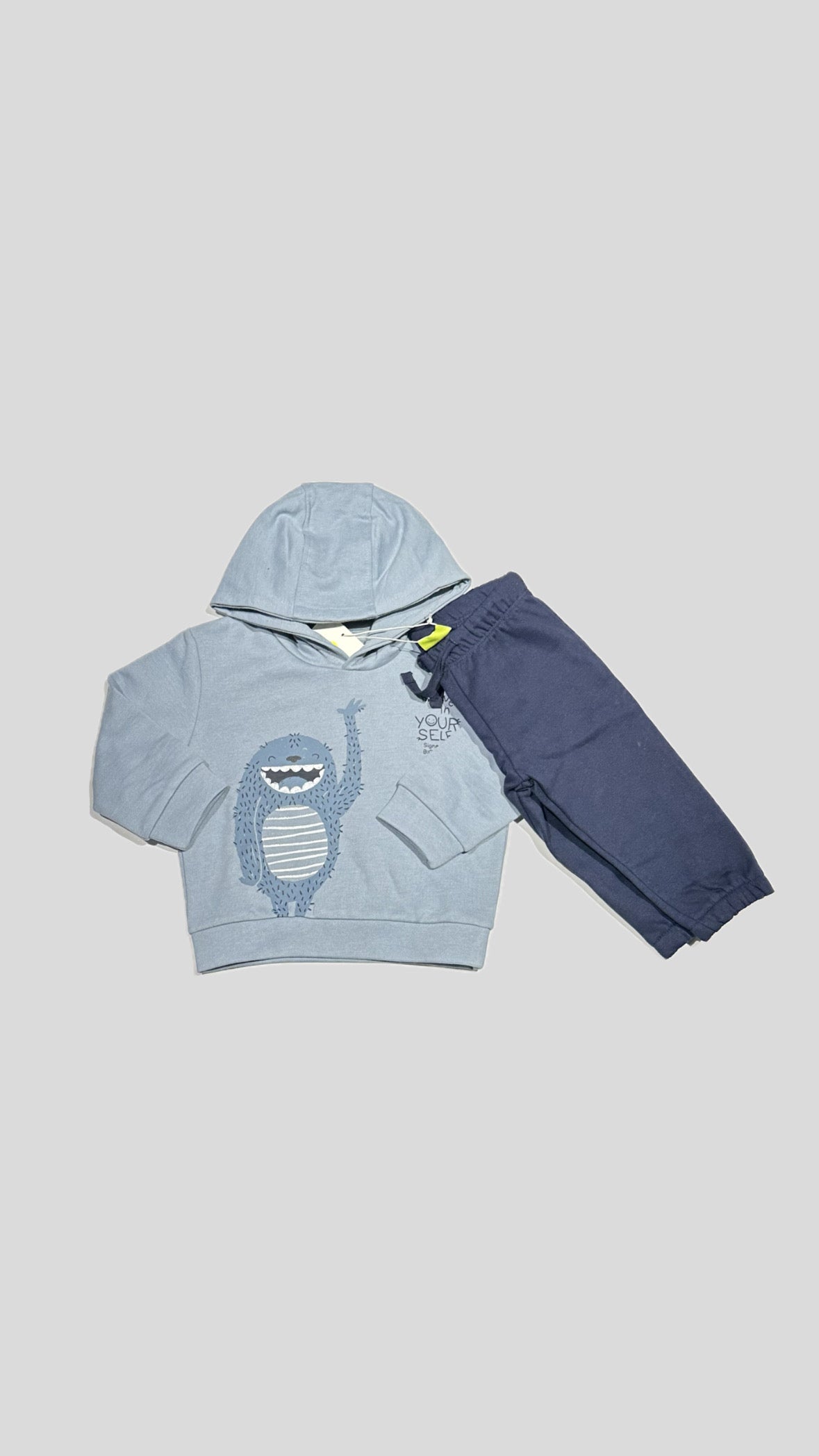 Completo Neonato Losan, composto dalla felpa e pantalone a fantasia.