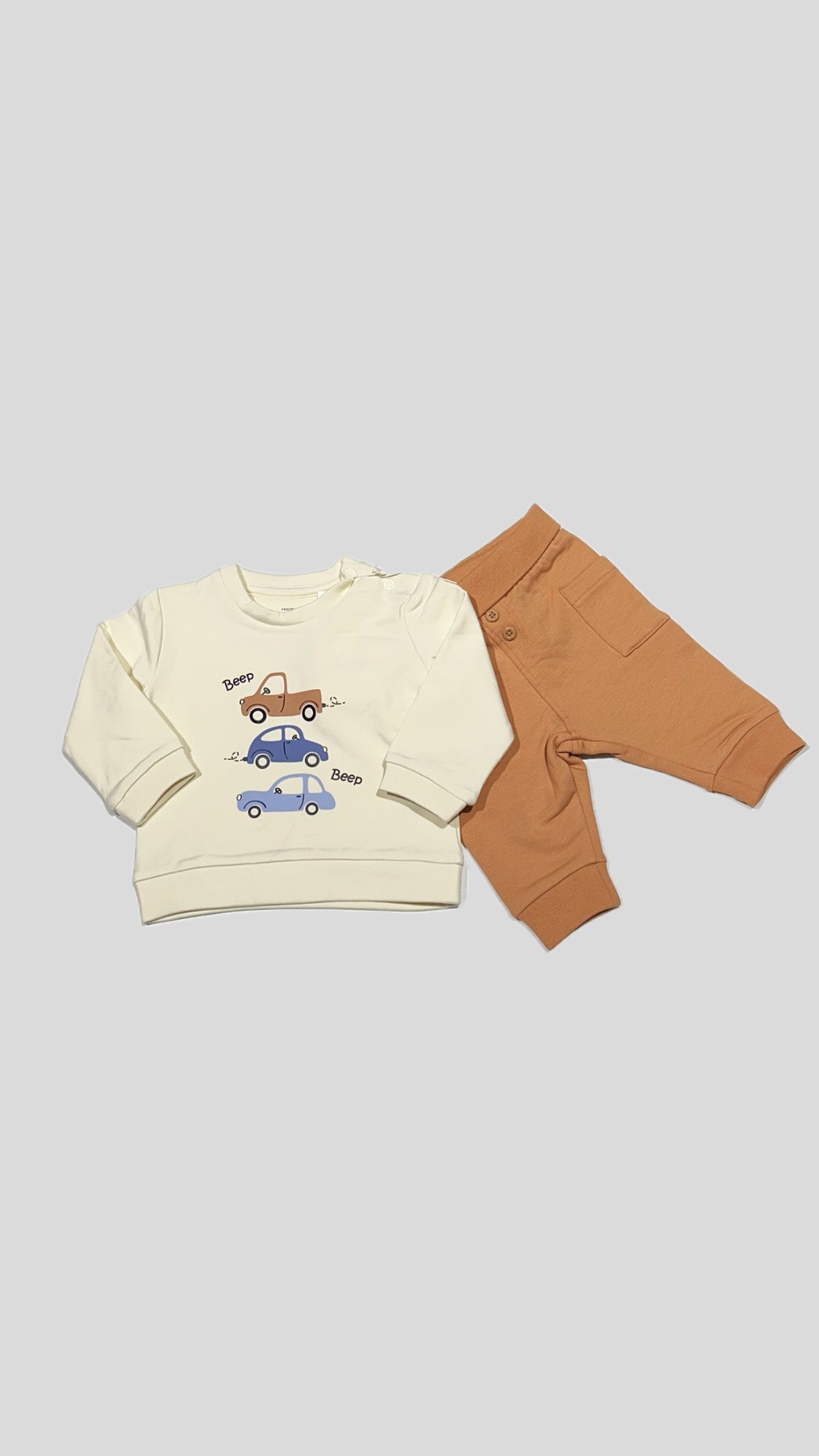 Completo neonato Losan tre pezzi, composto dalla felpa, maglia e pantalone.