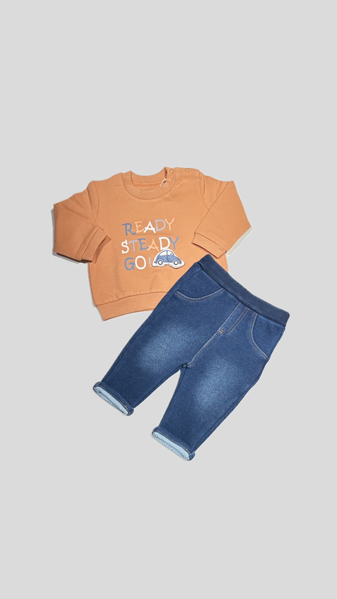 Completo Neonato Losan, composto da felpa e pantalone, vestibilità regolare.