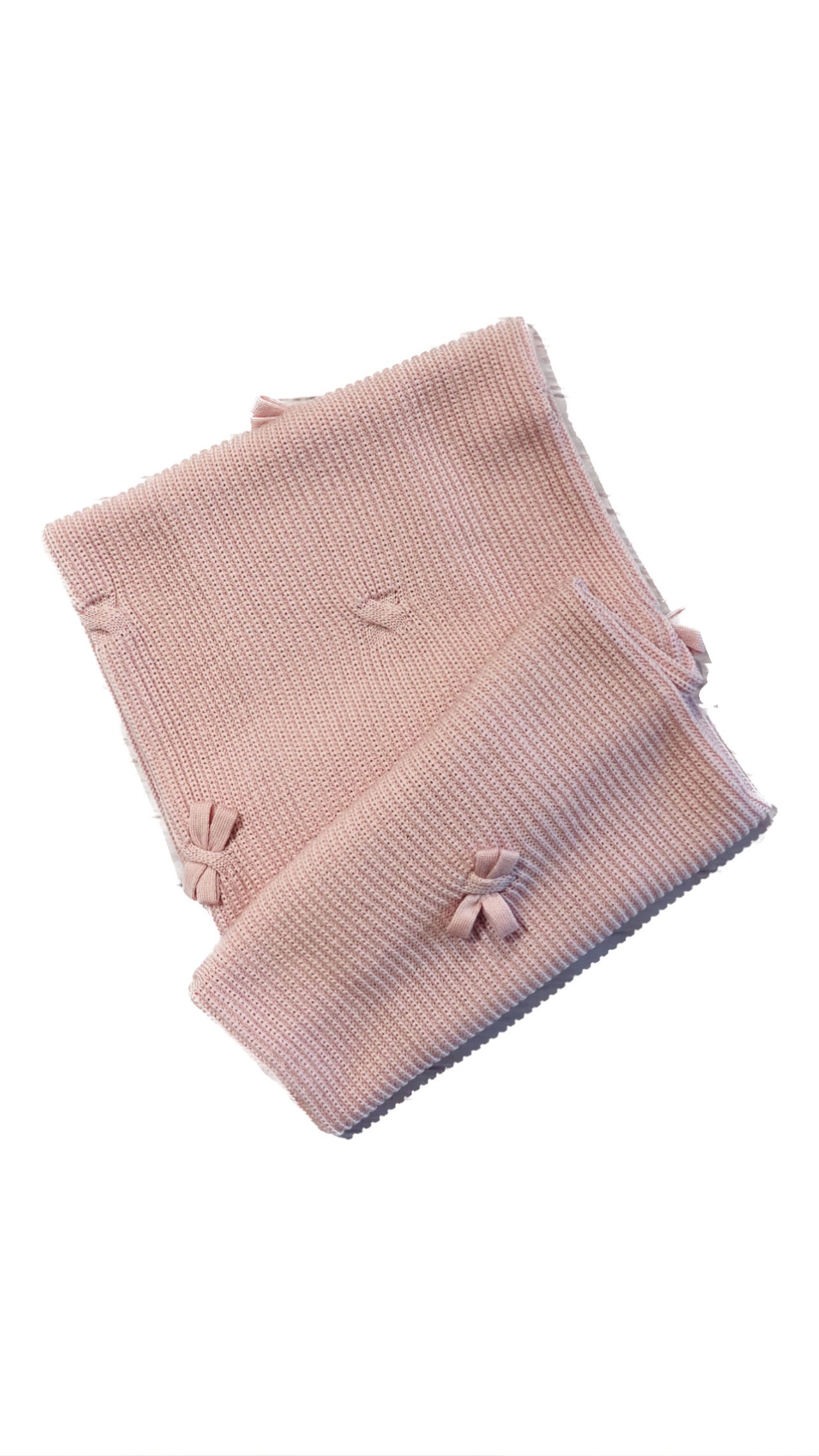 Coperta 100% lana elegante e raffinata. Ricamata con fiocchi in rilievo, unica variante di colore Rosa.