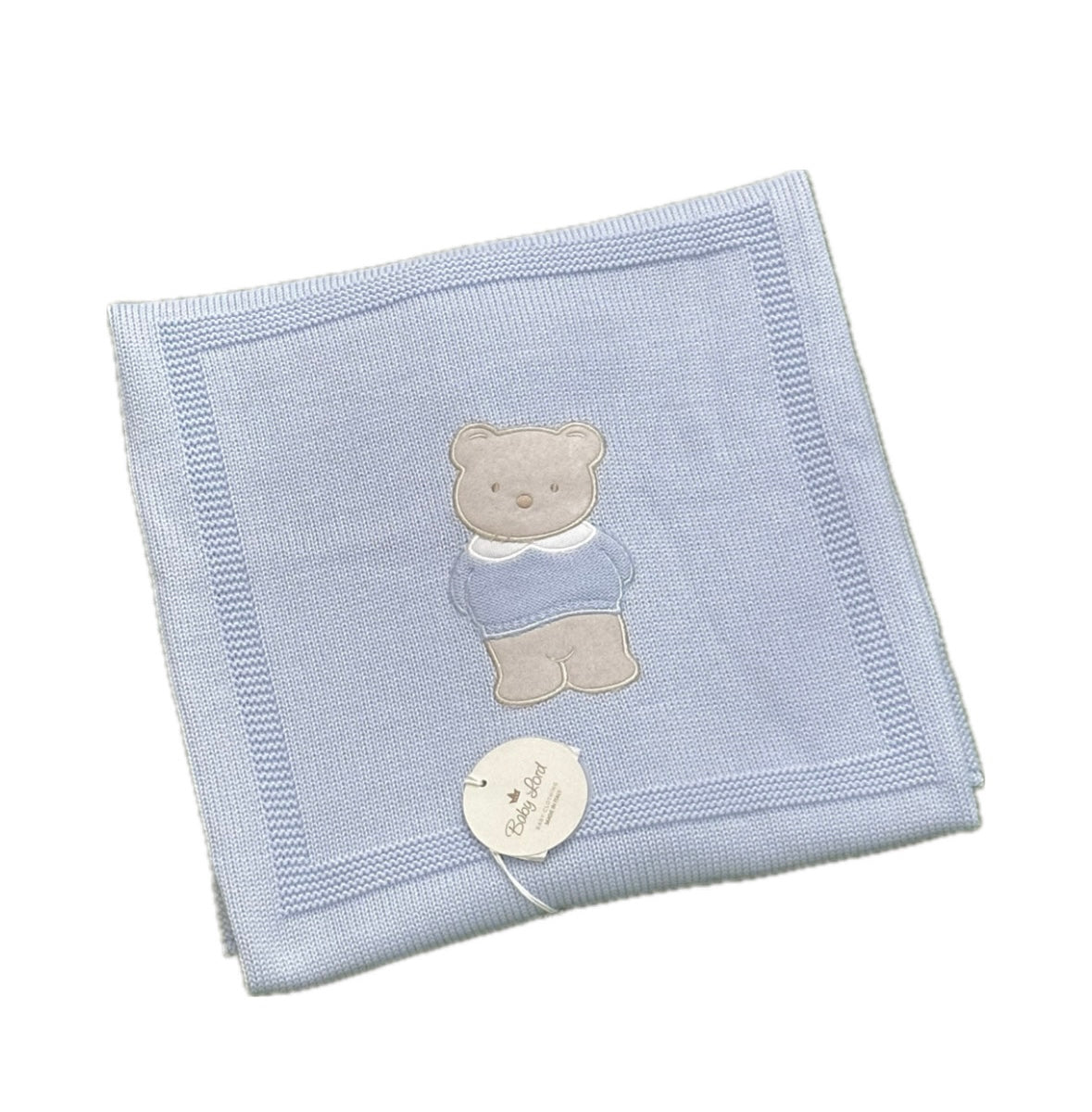 Copertina Baby Lord 100% lana. Unica variante di colore Azzurro con orsetto centrale in contrasto di colore.