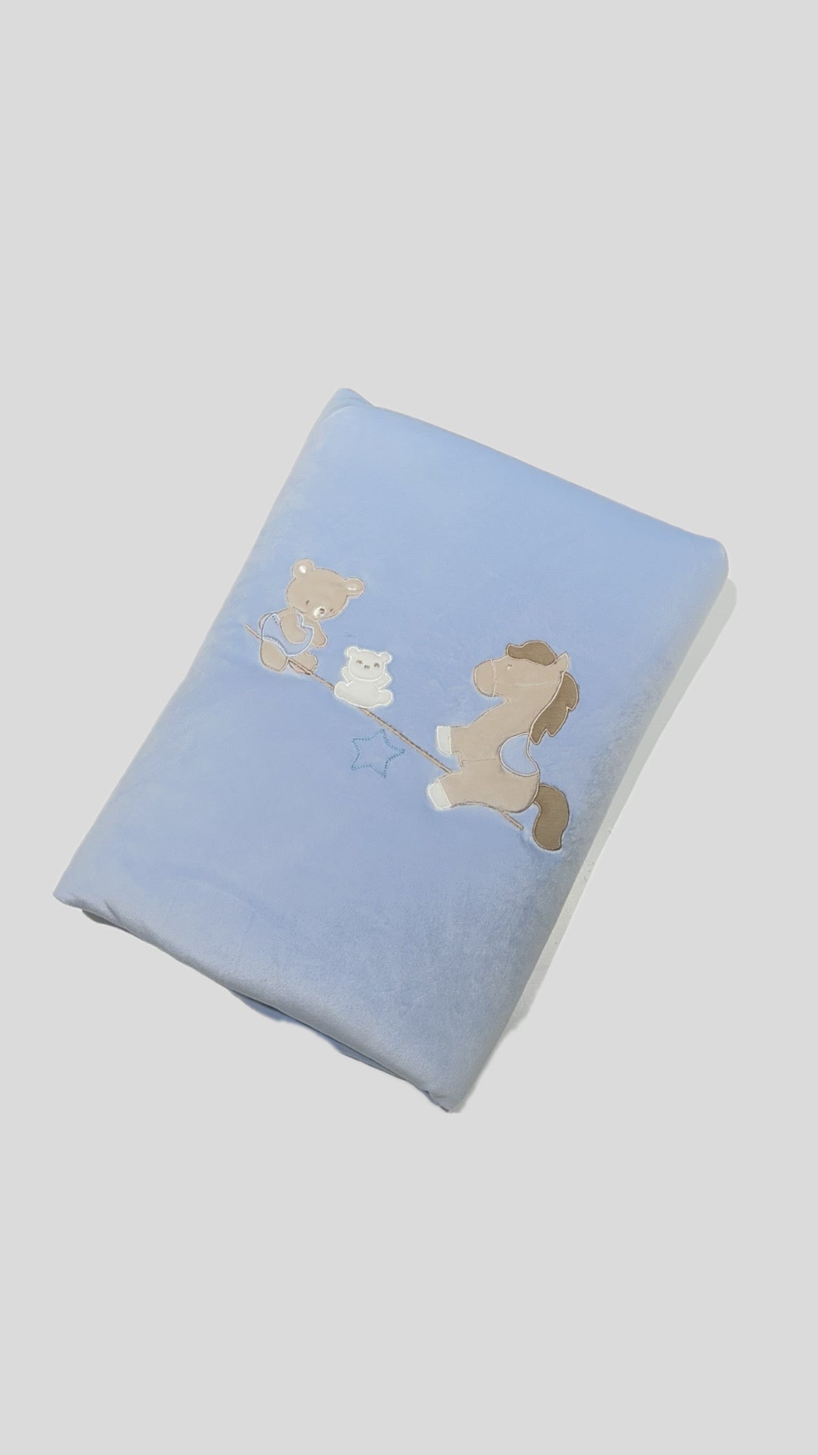 Copertina Melby in ciniglia fondo Celeste neonato, fantasia centrale.