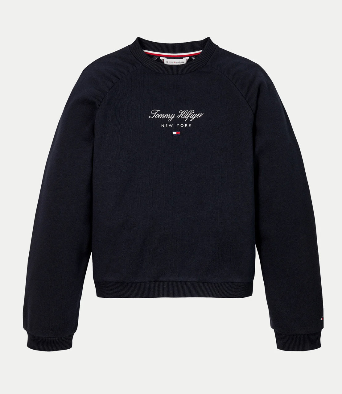 Felpa Bambina Tommy Hilfiger, in cotone garzato. Fondo Blu, dettagli sulle spalline. Logo centrale in contrasto di colore, vestibilità regolare.