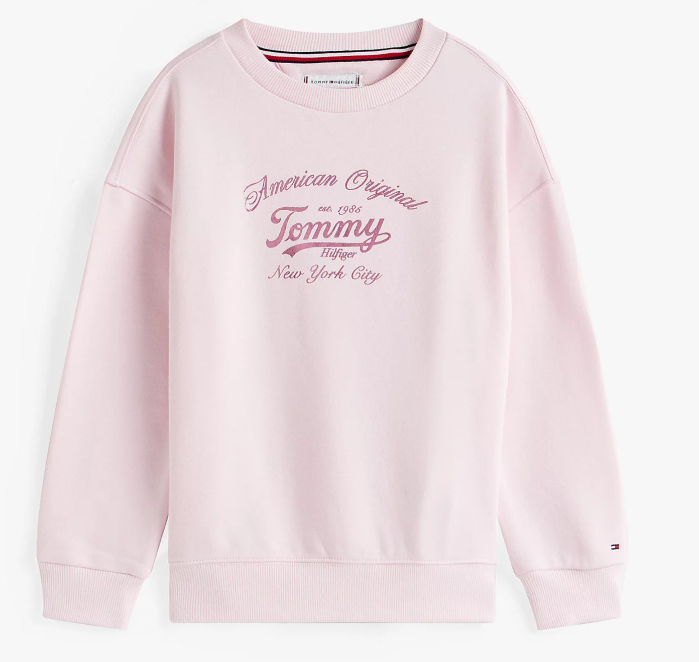 • Logo Tommy Hilfiger NYC in corsivo metallizzato sul petto