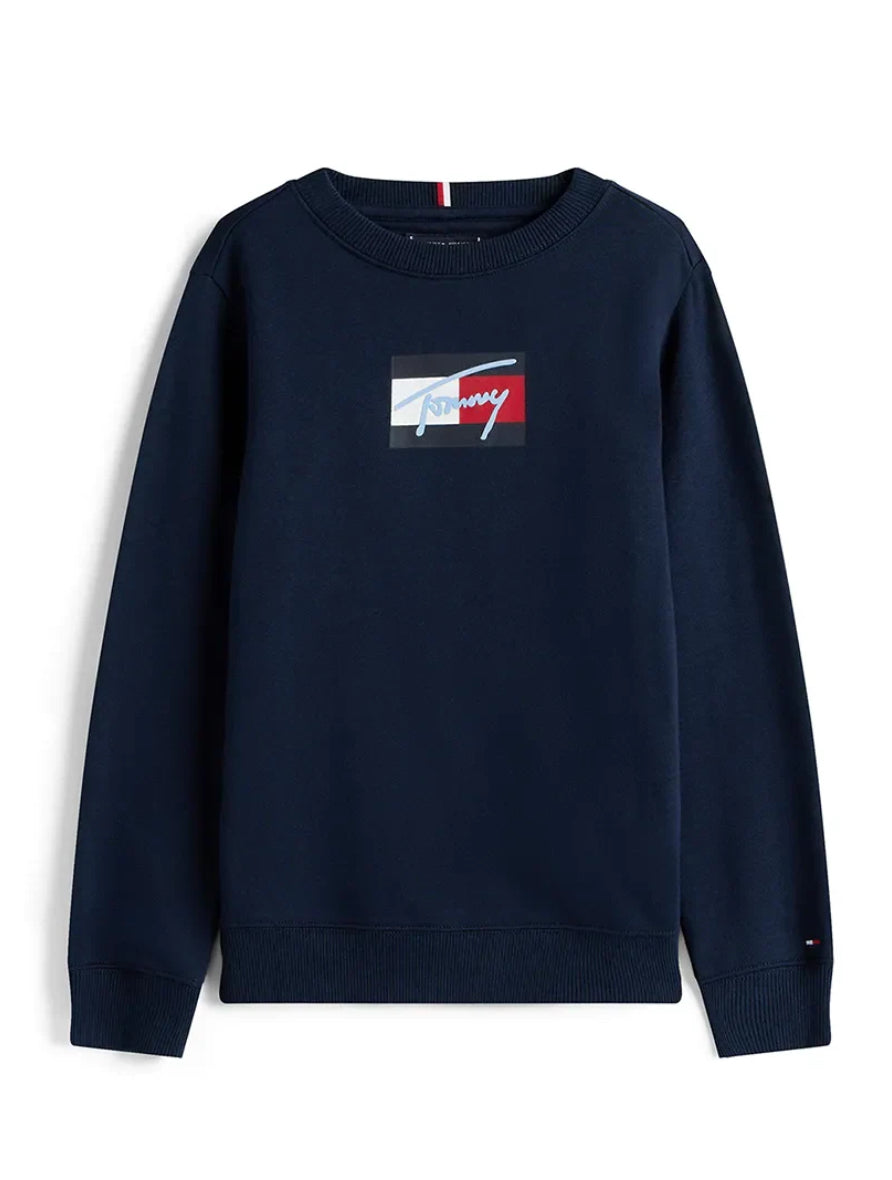 Felpa per bambini della collezione Tommy Hilfiger. Modello Fatto di maglia con applicazioni. - Taglio dritto che...