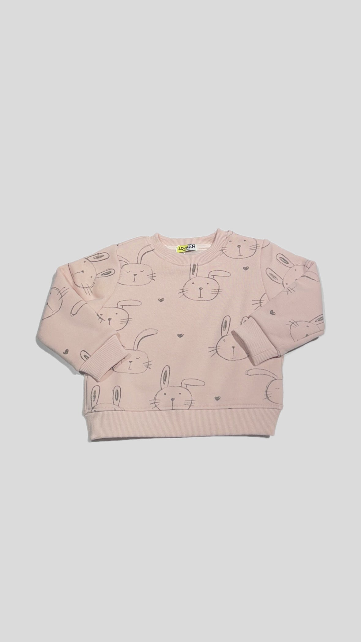 Felpina Losan Bambina fondo Rosa con fantasia coniglietti.