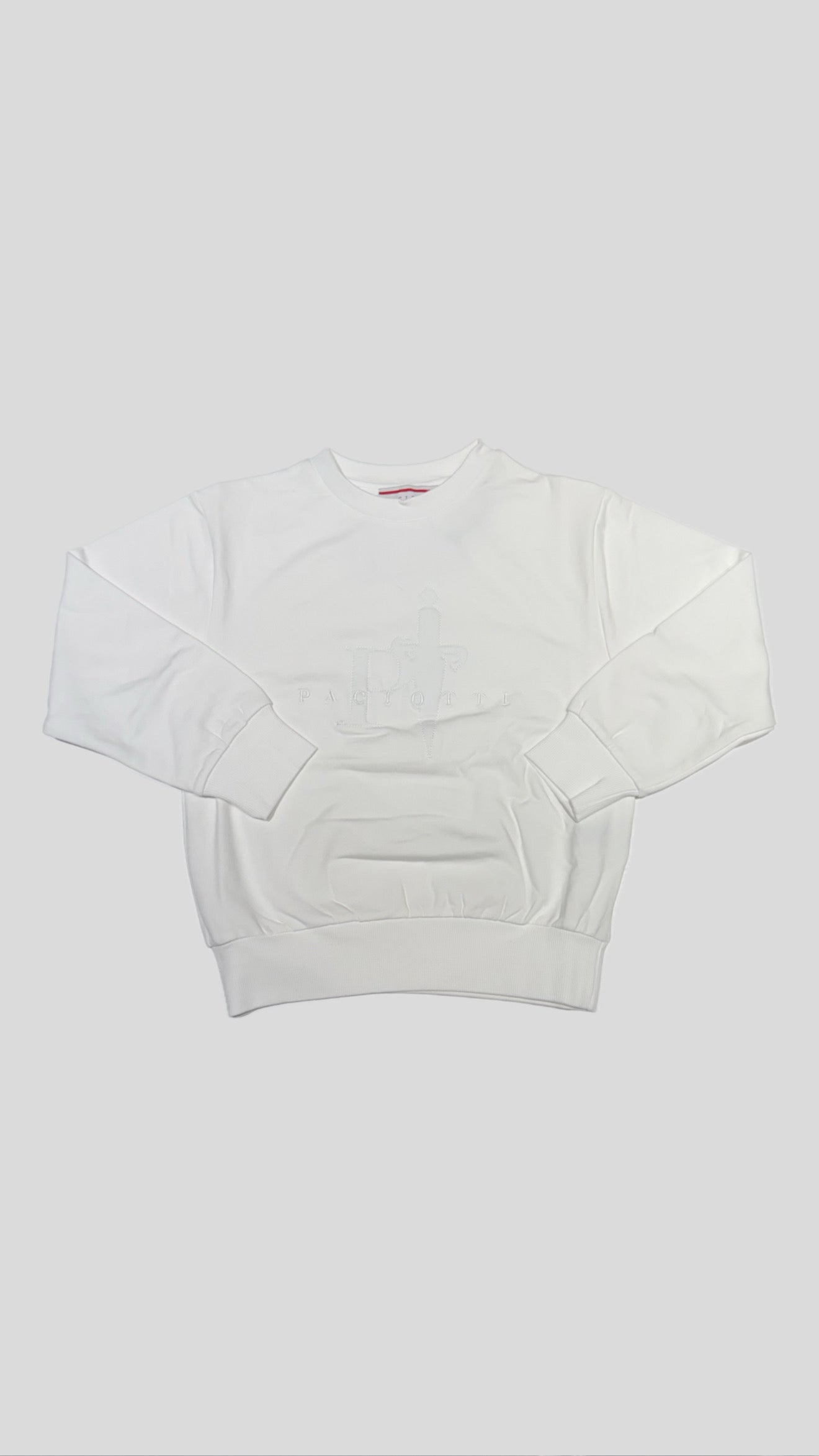 Felpa Paciotti bimbo/ragazzo. Fondo Bianco, girocollo. Realizzata con logo centrale ricamato tono su tono, felpata all’interno, vestibilità regolare.