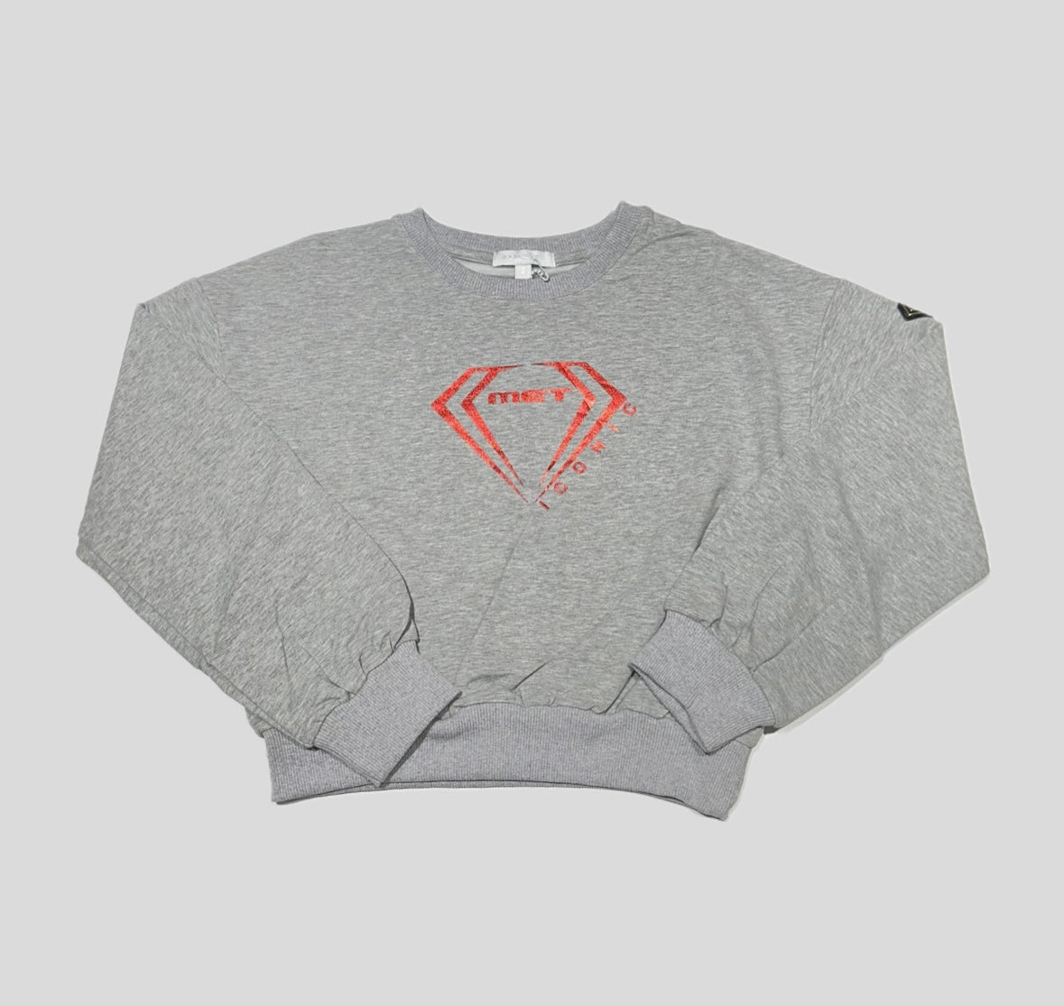 Felpa Met ragazza, modello cropped disponibile in due varianti di colore, Grigio e Nero. Logo centrale in contrasto di colore, vestibilità regolare.