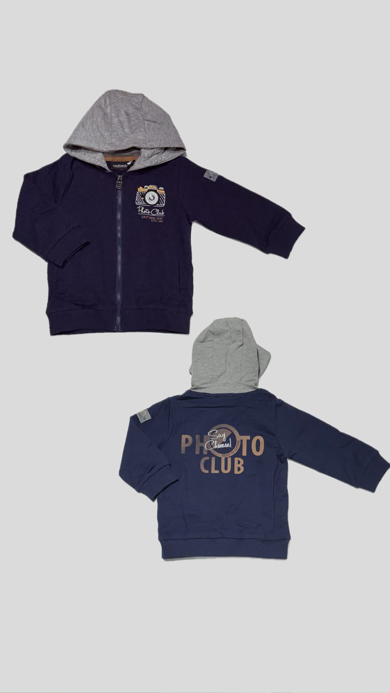 Felpa Sarabanda neonato/bambino, fondo Blu con zip e cappuccio.