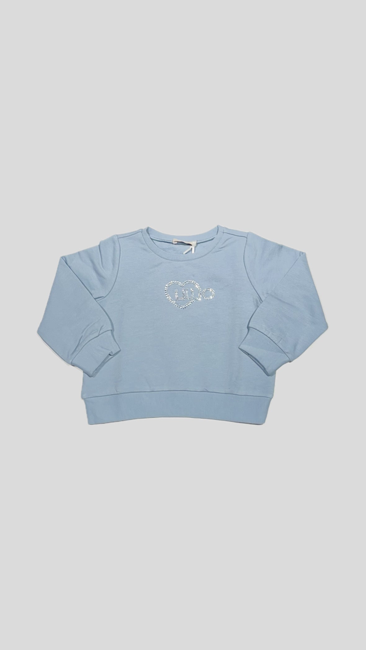 Felpa Liu Jo neonata/bambina, disponibile in due varianti di colore Azzurro Polvere e Rosa. Felpata all’interno, logo sul davanti in strass, vestibilità regolare.