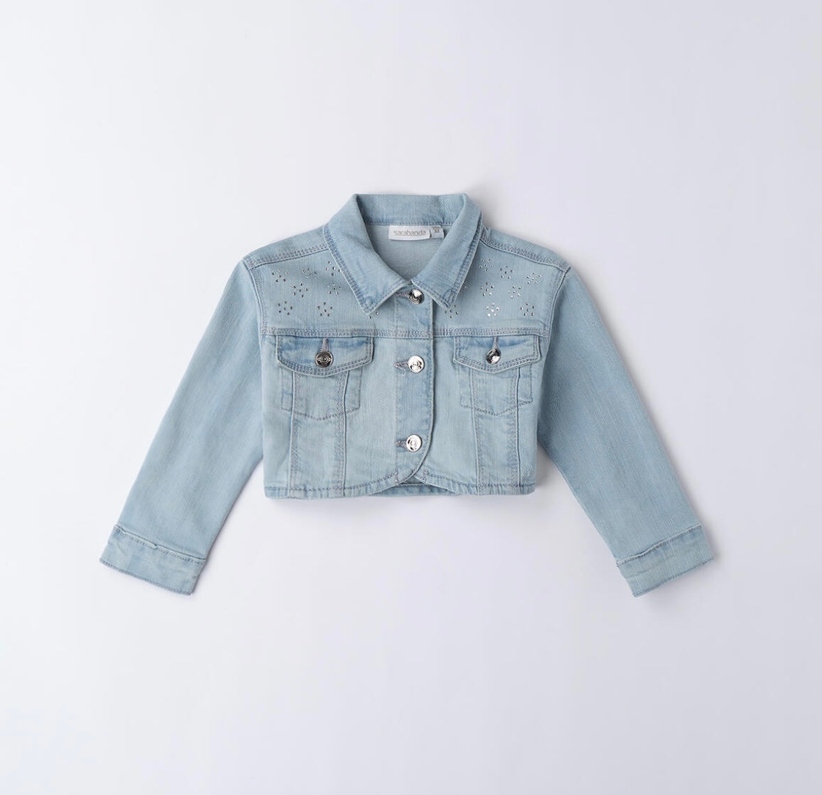 Giacca jeans bambina Sarabanda realizzata in denim stretch di cotone. Il modello presenta apertura frontale con bottoni. Vestibilità regolare.
