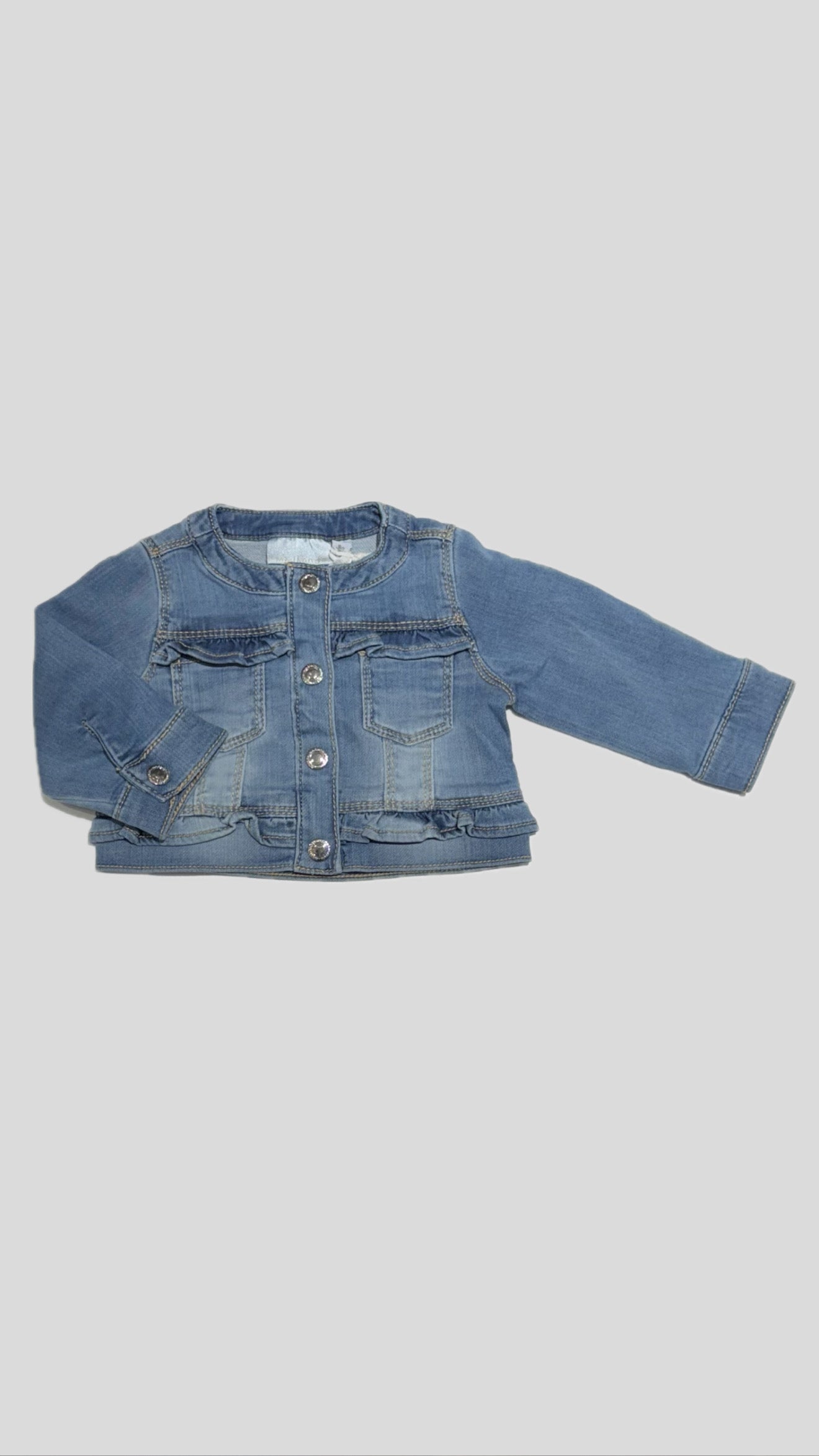Giacca in denim modello cropped Minibanda, realizzato con taschini sul davanti, vestibilità regolare.