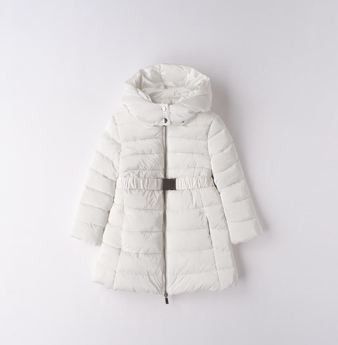 Giubbotto bambina Sarabanda realizzato in poliestere shining con imbottitura in ovatta e fodera in caldo tessuto. Cintura in vita.Cappuccio staccabile. Apertura con zip con doppio cursore, vestibilità regolare.