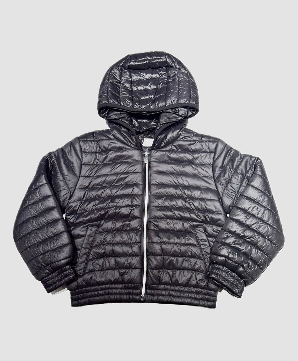Giubbino termico ragazza Sarabanda, fondo Nero, realizzato con tasche laterali, cappuccio, chiusura con zip sul davanti, vestibilità regolare.