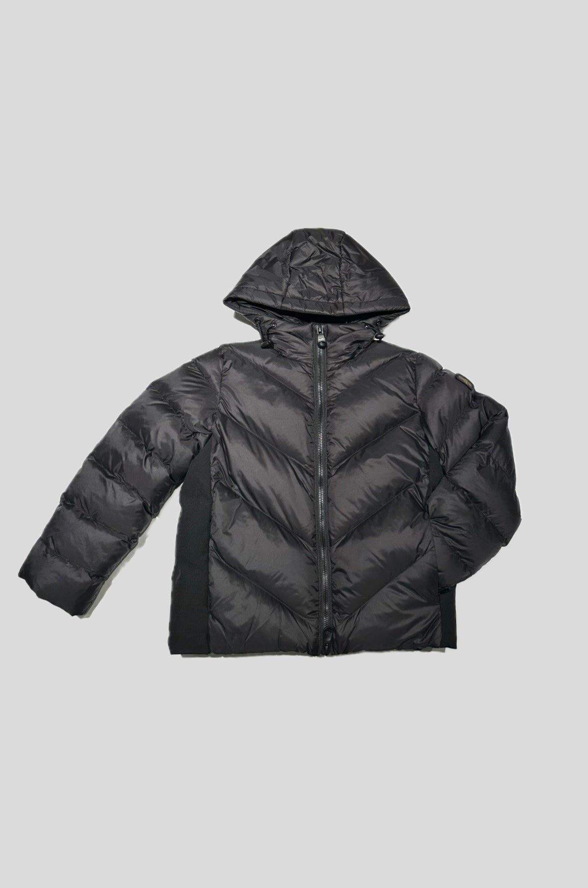 Giubbino Ragazza Refrigiwear, fondo Nero. Realizzato con tasche laterali, cappuccio, tasche laterali, logo sulla manica, vestibilità regolare.