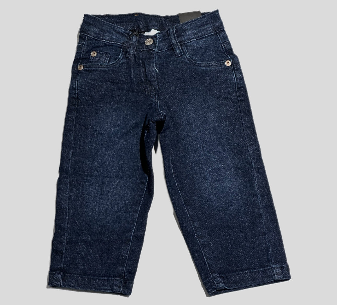 Jeans Sarabanda denim Scuro. Modello a palazzo. Realizzato con tasche laterali e sul retro, chiusura con bottone e cerniera, vestibilità regolare.