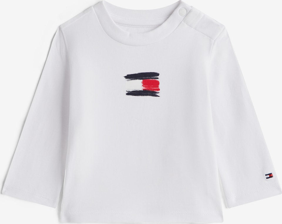 Maglia Tommy Neonato, in cotone manica lunga, fondo Bianco. Logo effetto pittura sul davanti un contrasto di colore, vestibilità regolare.