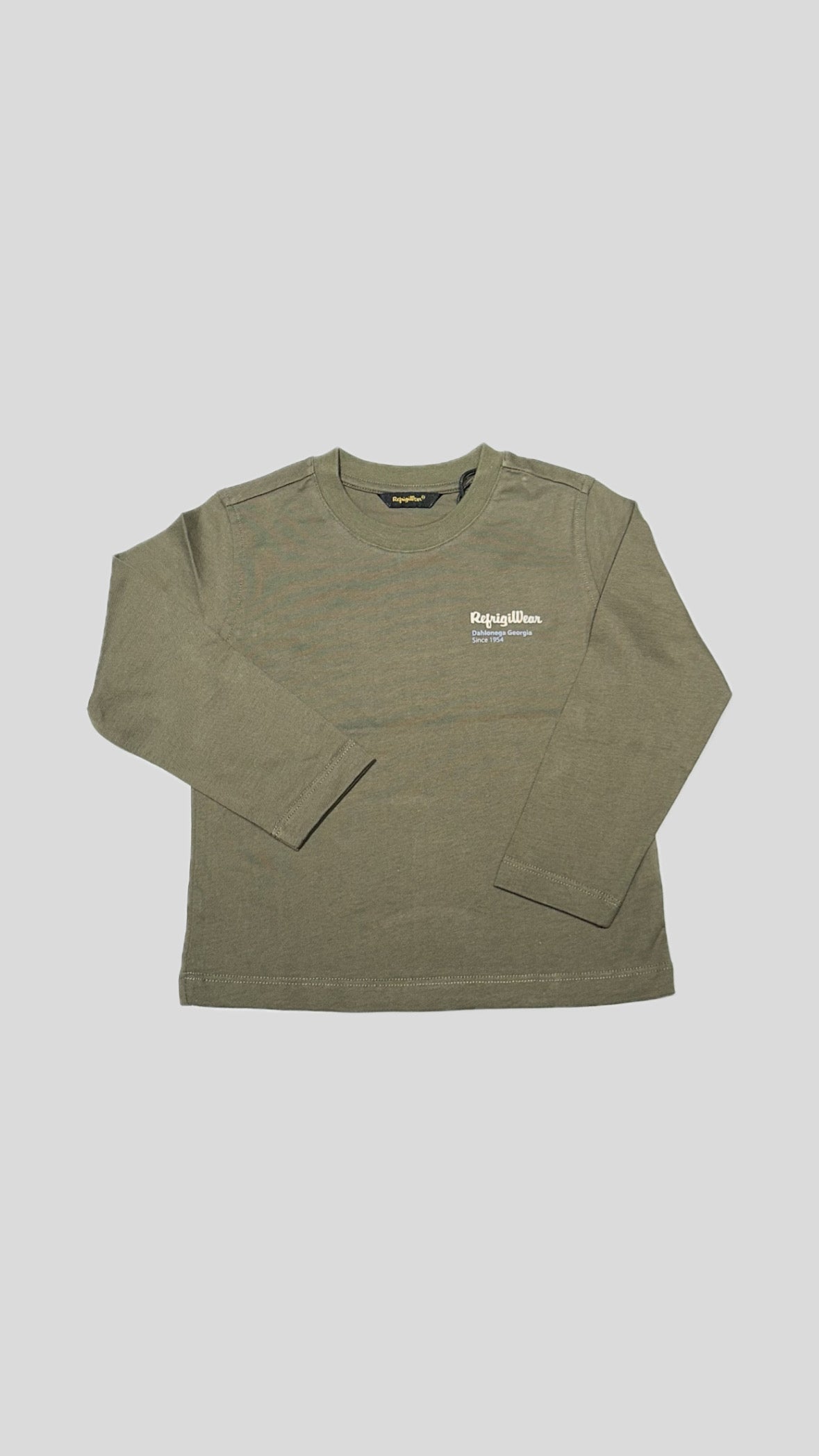 Maglia Refrigiwear Bambino, fondo Verde manica Lunga. Logo laterale in contrasto di colore, vestibilità regolare.