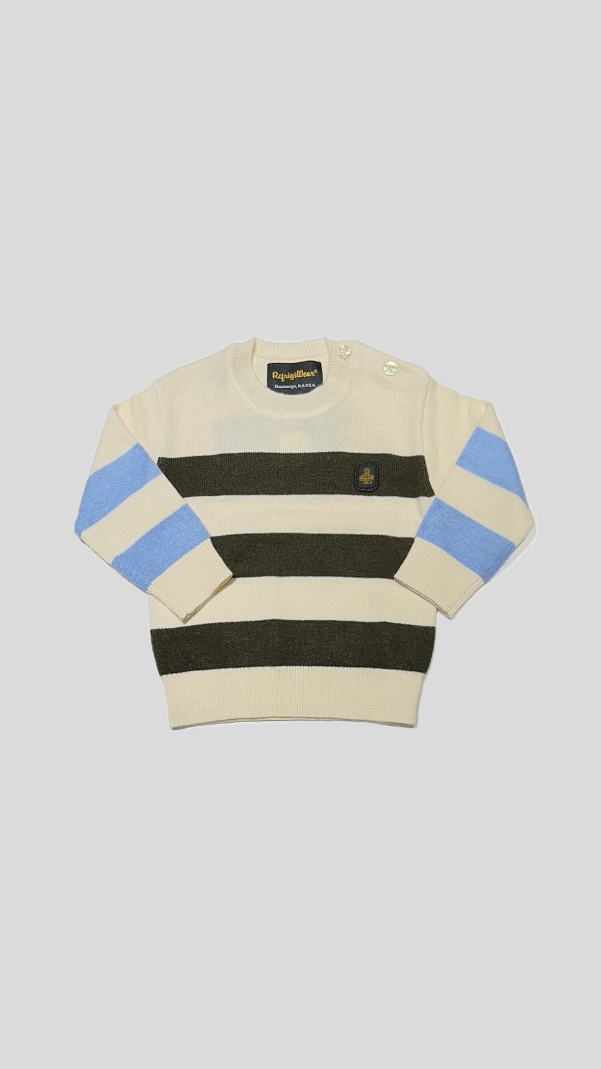 Maglioncino in Lana neonato Refrigiwear, fantasia a righe in contrasto di colore, giricollo, logo laterale, vestibilità regolare.