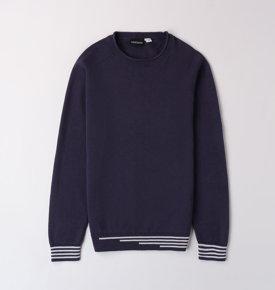 Maglia per bambino Sarabanda 8-16 anni realizzata in 100% cotone. Il modello è in fantasia tinta unita dettagli a contrasto sul fondo e sulle maniche.