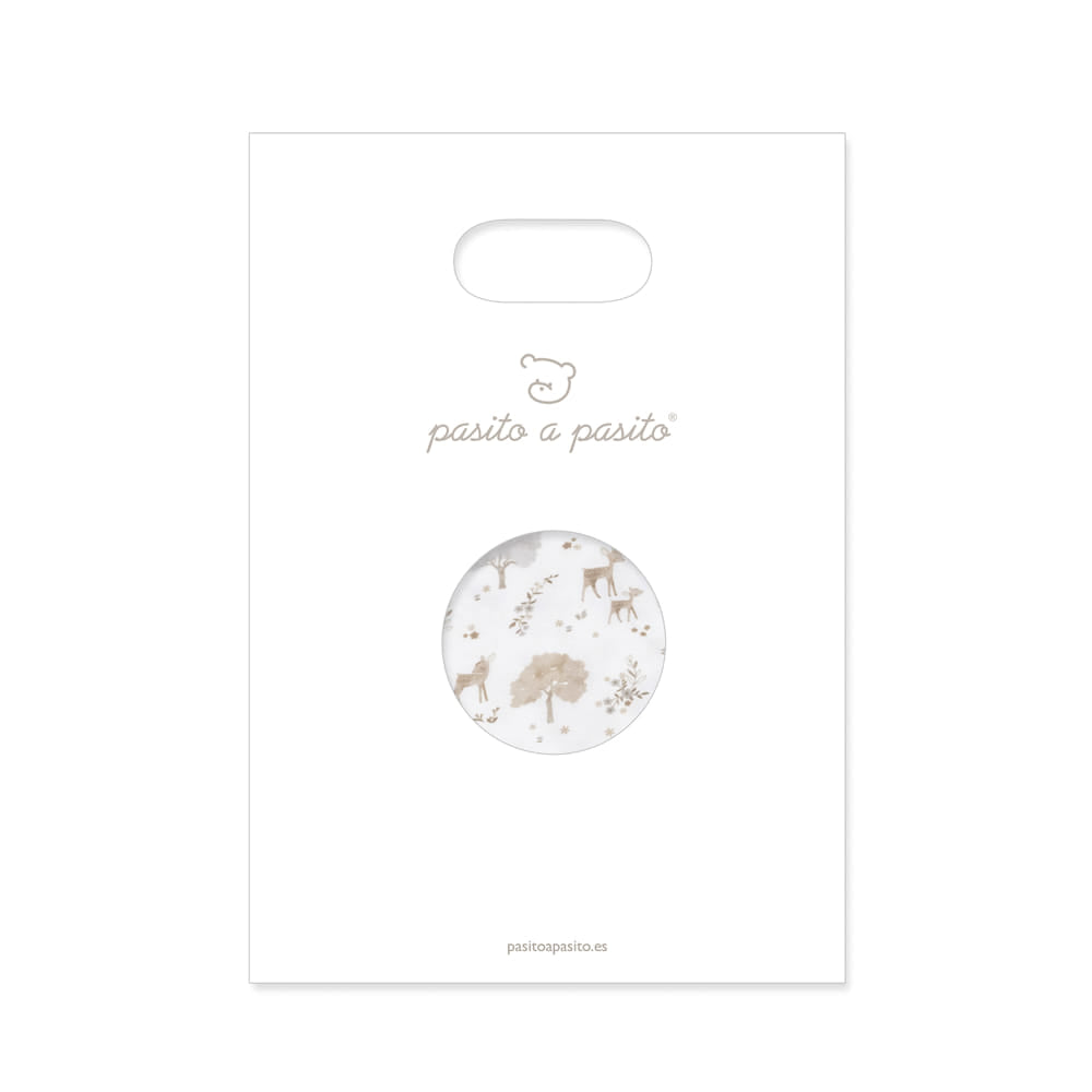La mussola Nara con stampa di cervi e alberi in tonalità neutre di Pasito a Pasito è un accessorio indispensabile per la cura del bebé. Realizzata con una combinazione di 70% bambù e 30% cotone, offre una texture ultramorbida, traspirante e delicata sulla pelle del neonato. Le sue dimensioni di 120×120 cm la rendono ideale per molteplici utilizzi: come coperta per il bebé, copertura per il passeggino, telo da allattamento o fasciatoio improvvisato. Grazie al tessuto traspirante, aiuta a regolare la temperatura del bebé, garantendo il massimo comfort in ogni situazione. Facile da lavare e mantenere, conserva la sua morbidezza lavaggio dopo lavaggio. Questo set di lenzuola e mussola Pasito a Pasito è un elemento essenziale per il corredino del bebé, combinando qualità, funzionalità e stile. Tutti i nostri prodotti sono realizzati nel rispetto delle più rigorose normative europee, con materiali di alta qualità privi di coloranti azoici, ftalati e sostanze nocive per la salute. Il tessuto è facile da pulire e si consiglia il lavaggio in lavatrice a 30º.