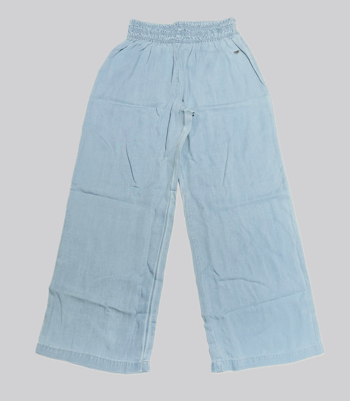 Pantalone morbido in denim, tasche laterali, elastico in vita.