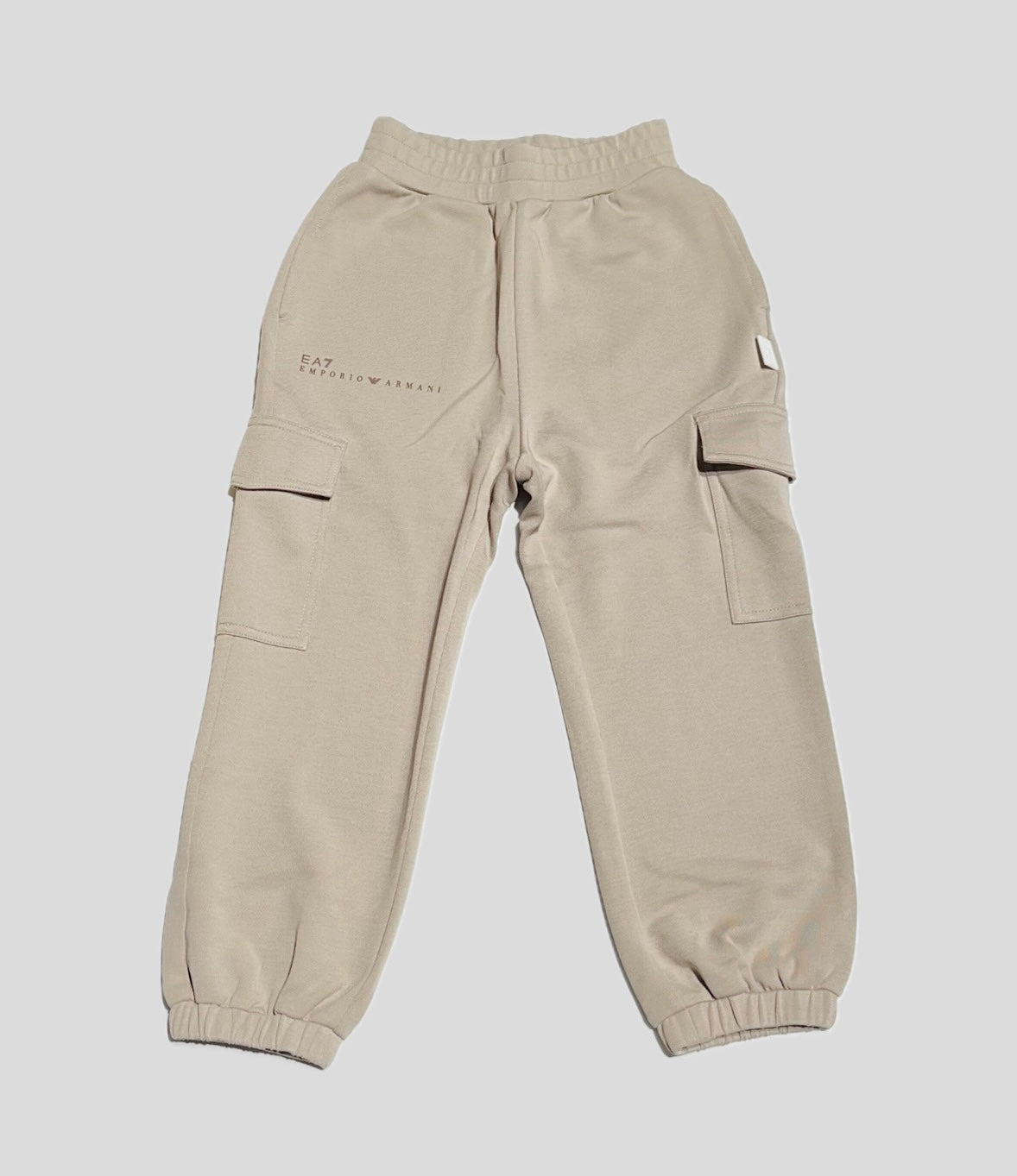 Pantalone Bimba/Ragazza Emporio Armani, fondo Beige. Realizzato con tasconi laterali, elastico in vita, vestibilità regolare.