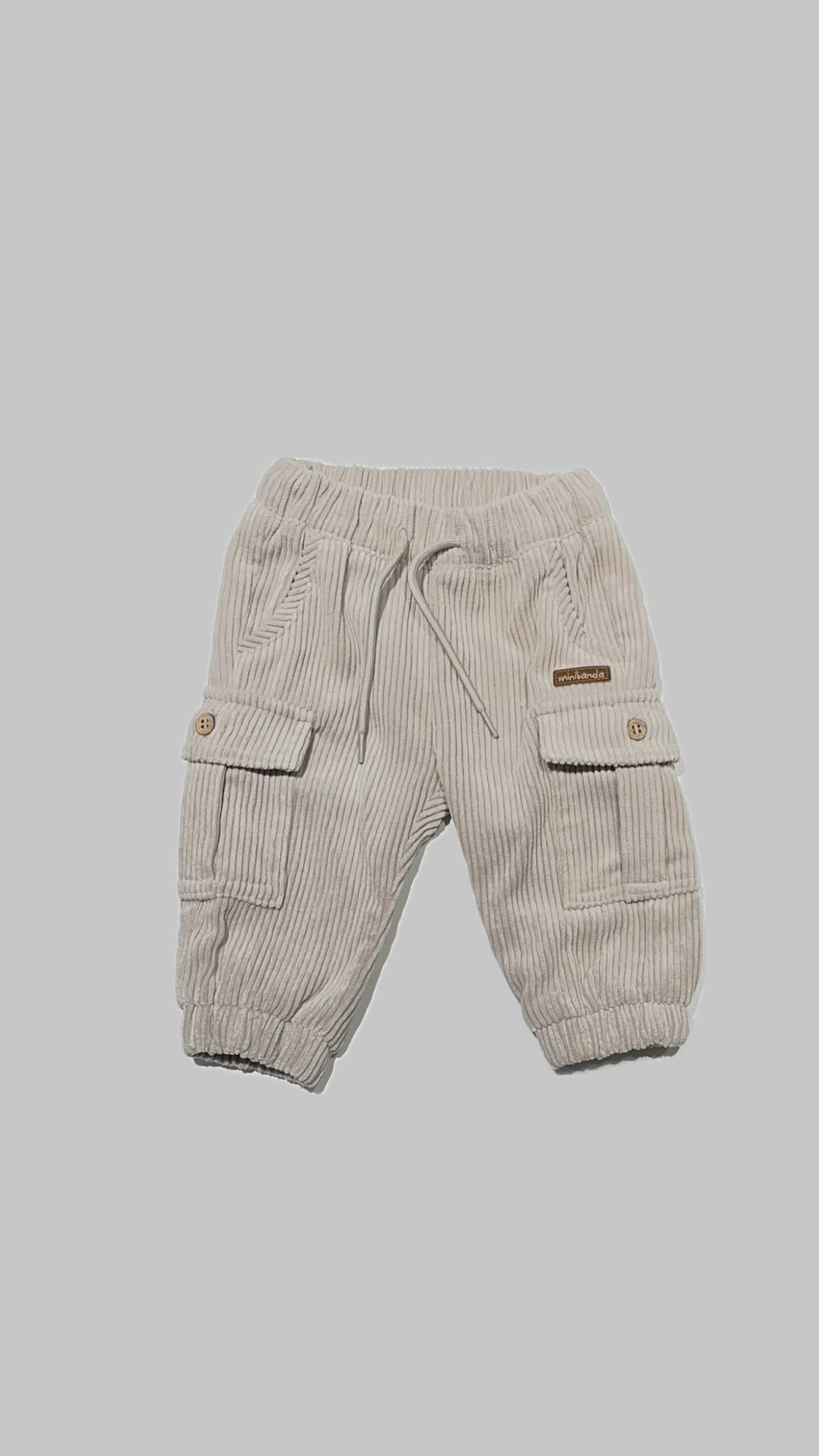 Pantalone Minibanda neonato fondo Beige. Realizzato un vellutino a costine, modello cargo.