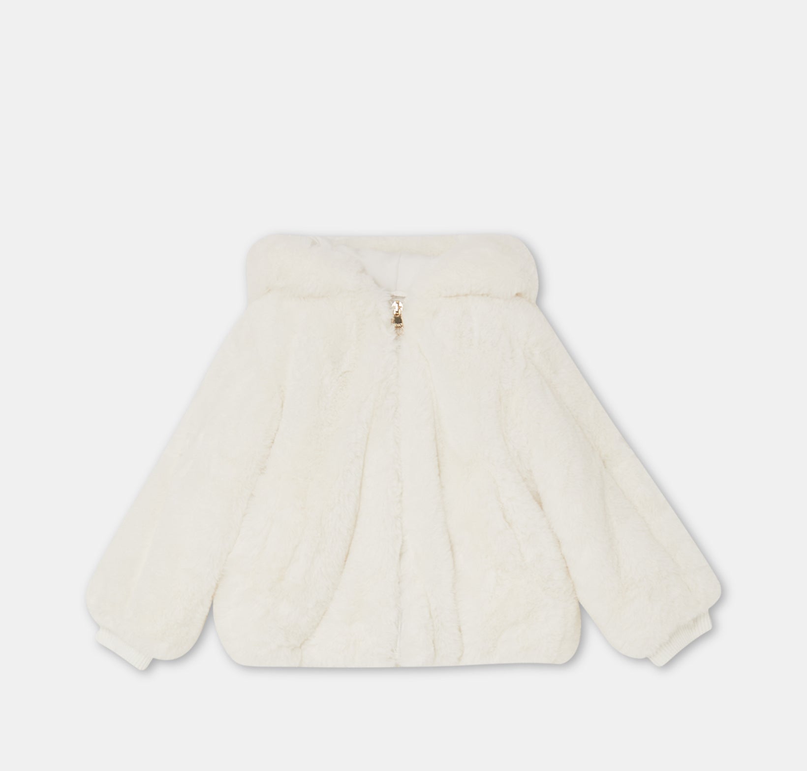 Pelliccia Liu Jo neonata/bambina, fondo Bianco, cappuccio, tasche laterali,  sui lati polsini a costine, logo ricamato sul...