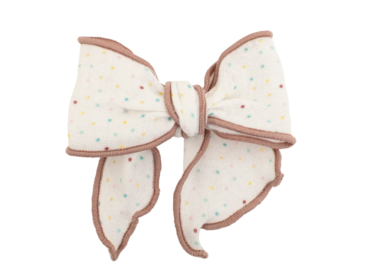 Completa il look della tua bambina con questo fermaglio a becco di cicogna con fiocco. Aggiungi un...