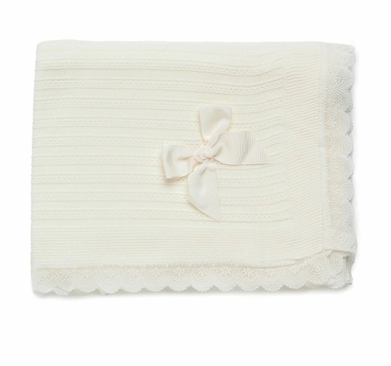 Scialle Juliana fondo Panna. Realizzato con ricami in pizzo, fiocco in rilievo in raso.