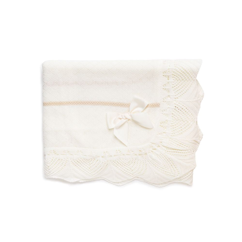 Scialle Juliana fondo Crema con ricami e fiocco sul davanti.