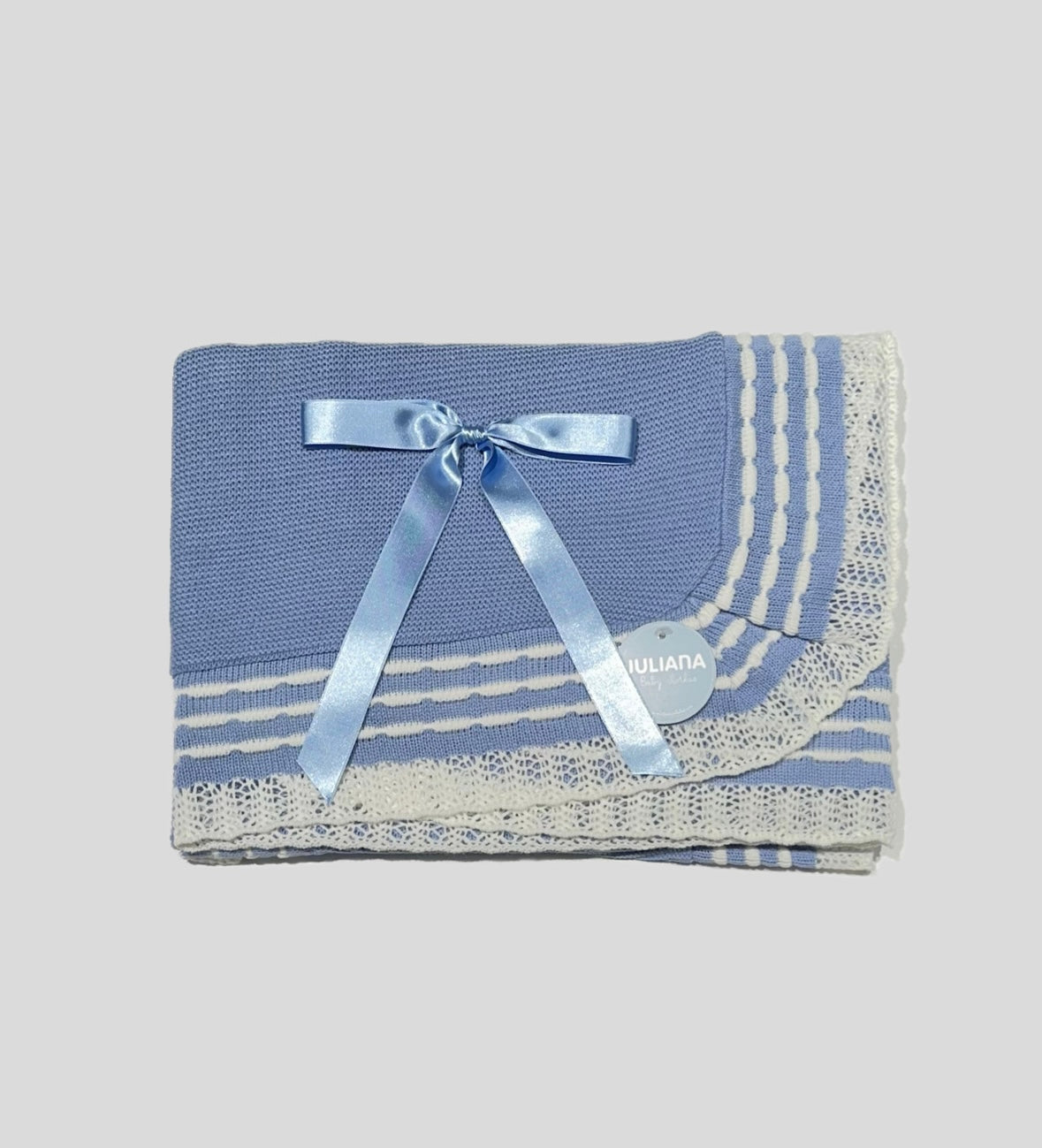 Scialle Juliana neonato con profili in contrasto di colore, fiocco in rilievo.