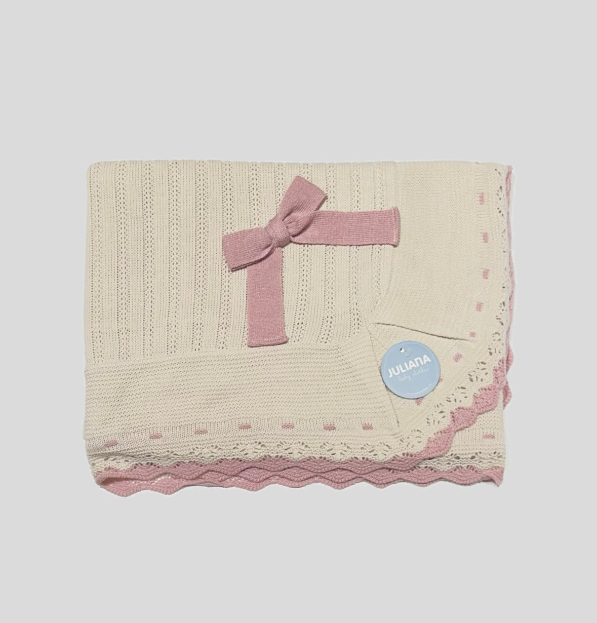 Scialle Juliana fondo Crema con profili Maquillaje. Fiocco sul davanti in rilievo.