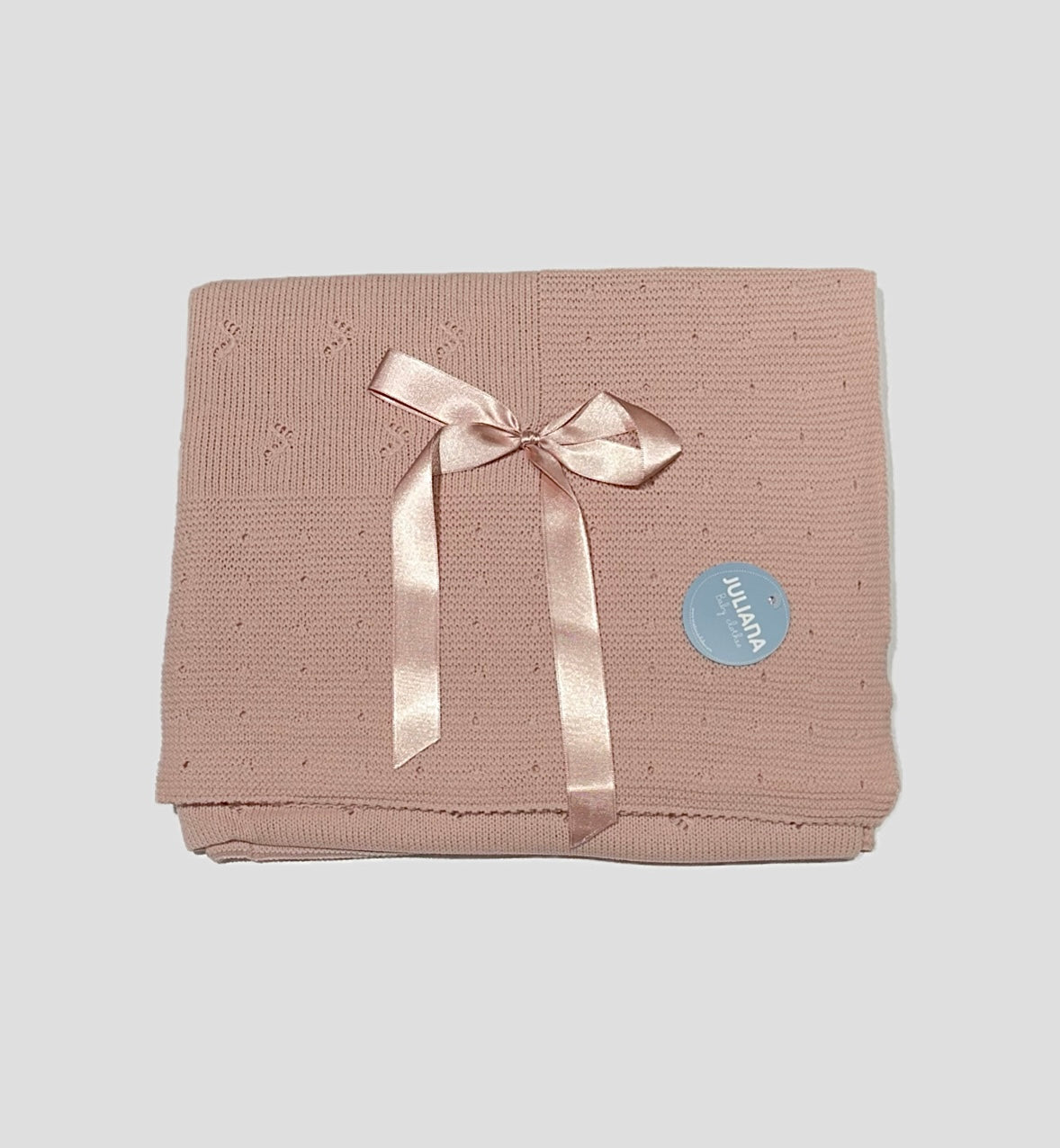 Scialle Juliana fondo Rosa Empolvado. Ricami traforati e fiocco in raso.