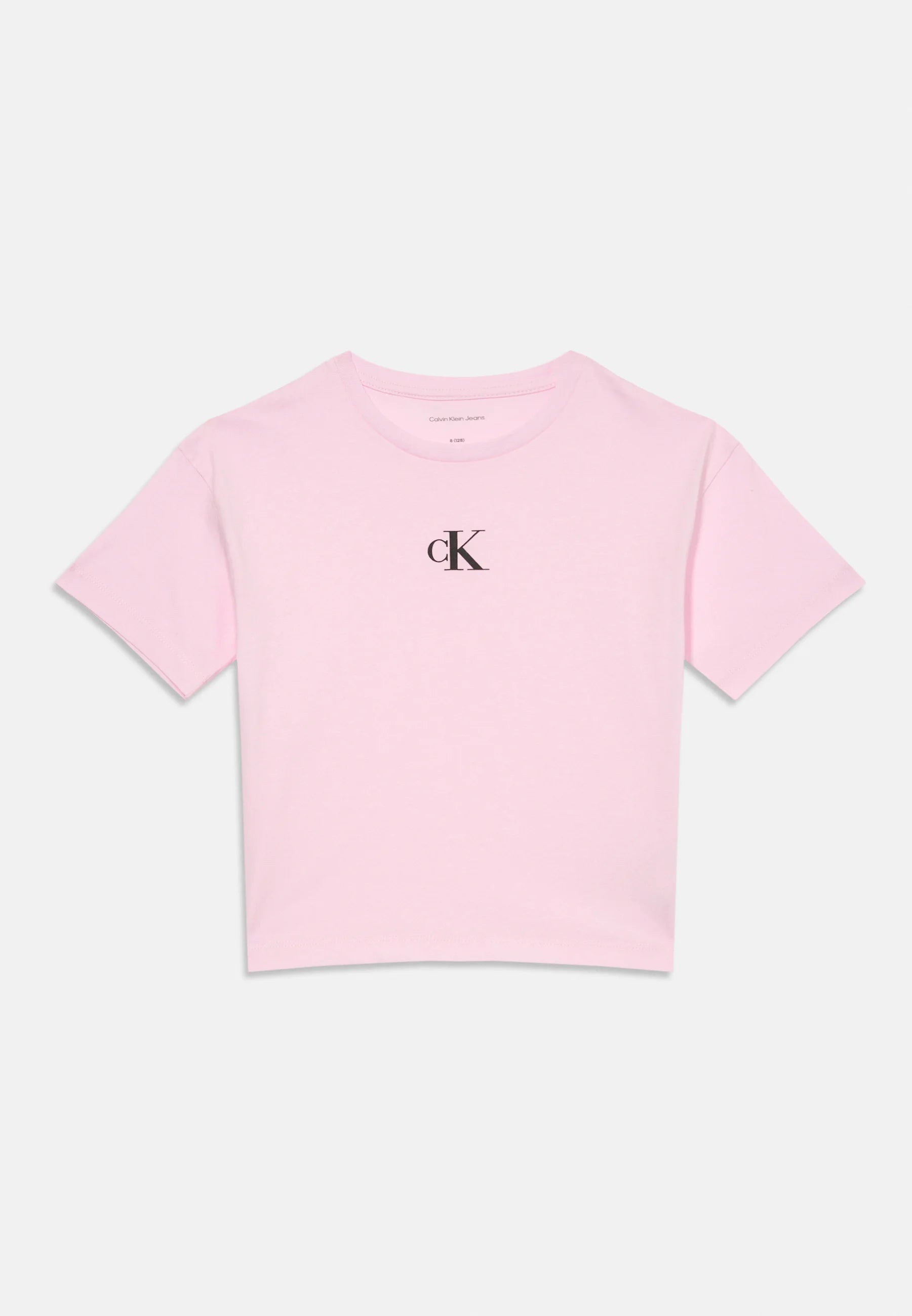 T-Shirt Calvin Klein Bimba/Ragazza, disponibile in due varianti di colore Rosa e Nero, modello cropped. Logo centrale in contrasto di colore, vestibilità regolare.