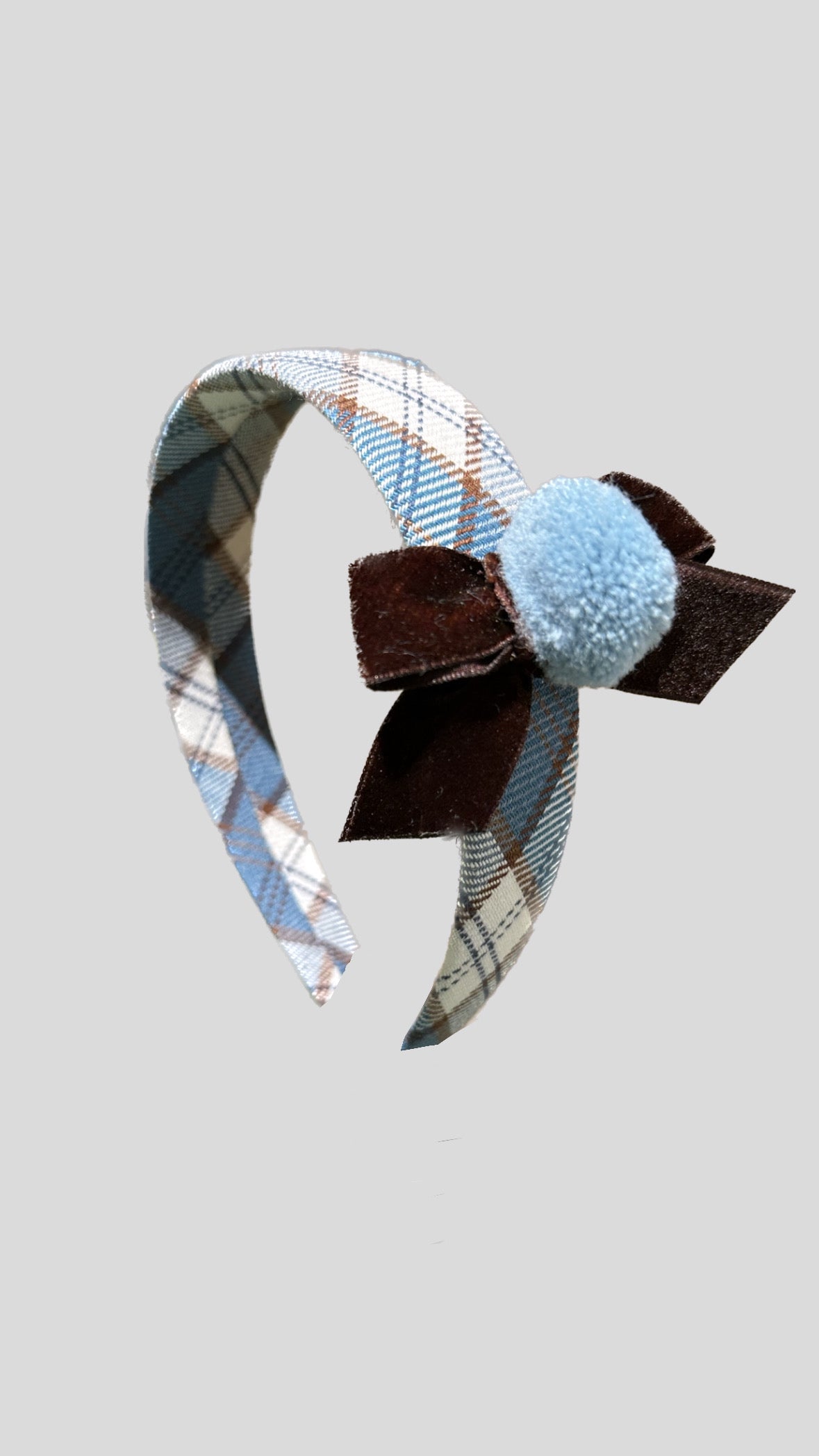 Cerchietto fantasia Tartan, con fiocco e pon e pon, taglia unica.