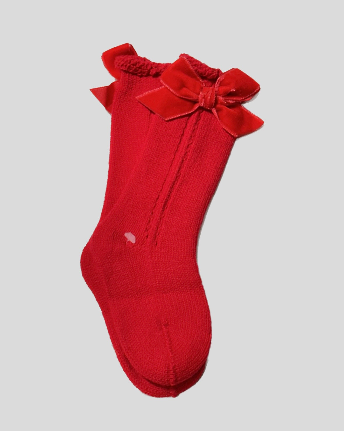 Calzini misto lana, realizzati con fiocco in velluto, unica variante di colore Rosso.