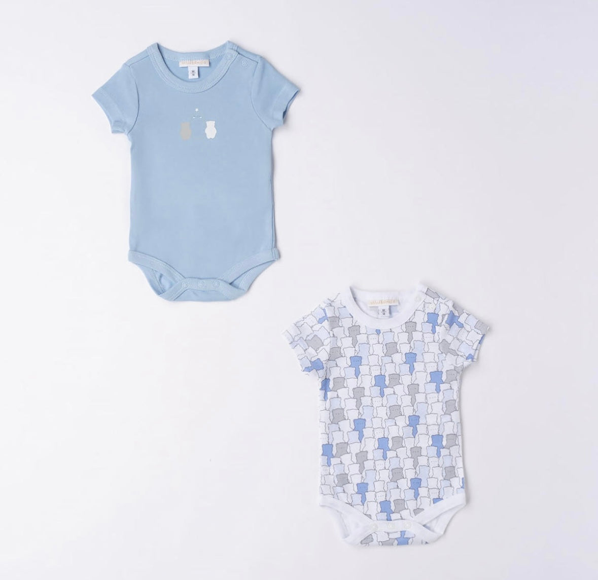 Coppia di body Neonato in cotone mezza manica, chiusura con bottoni sulle spalline e sul fondo, fantasia orsetto.