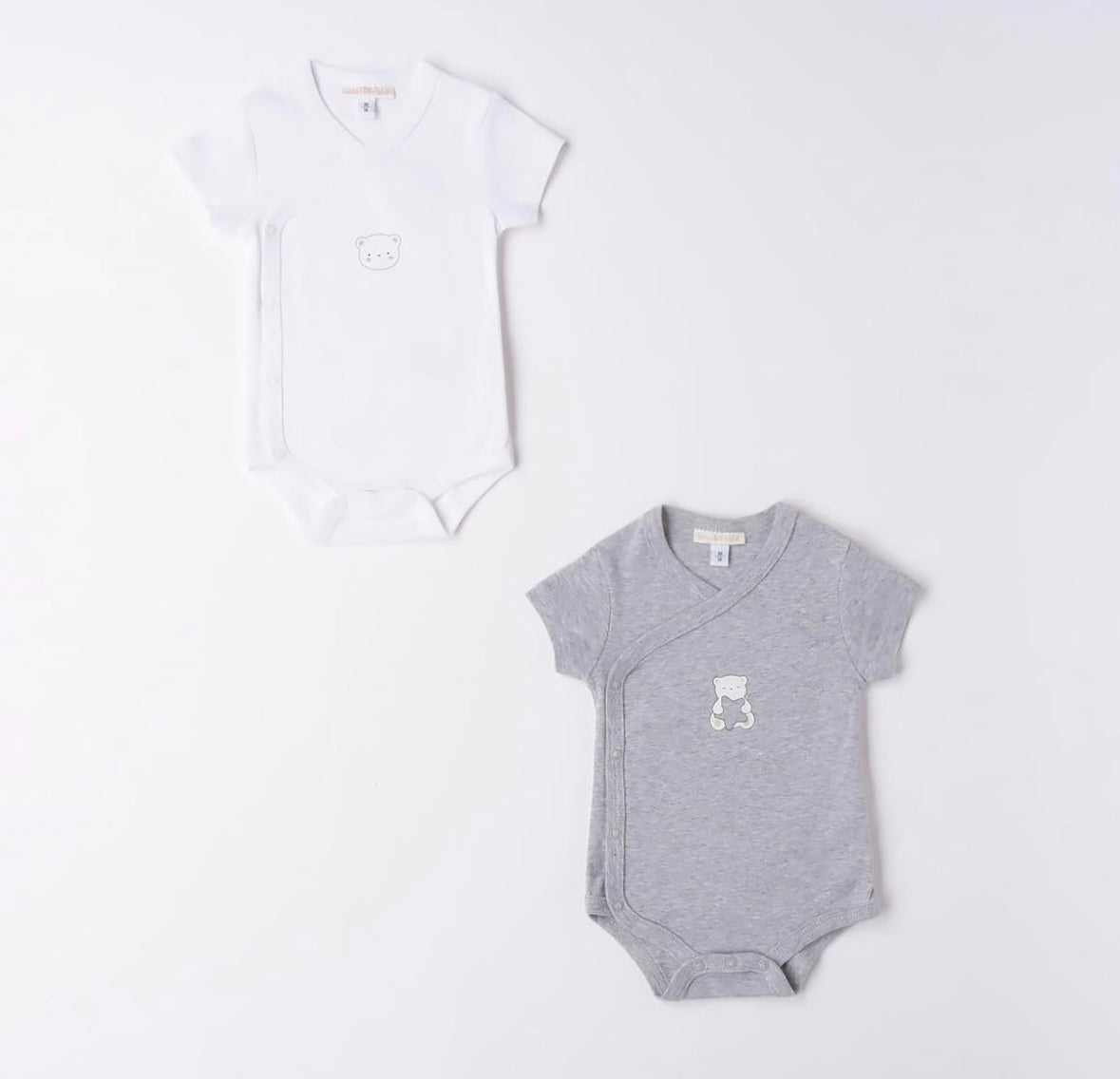 Coppia di Body 100% cotone Neonato unisex mezza manica, realizzato con apertura laterale e nell’interno coscia per agevolare la vestibilità.