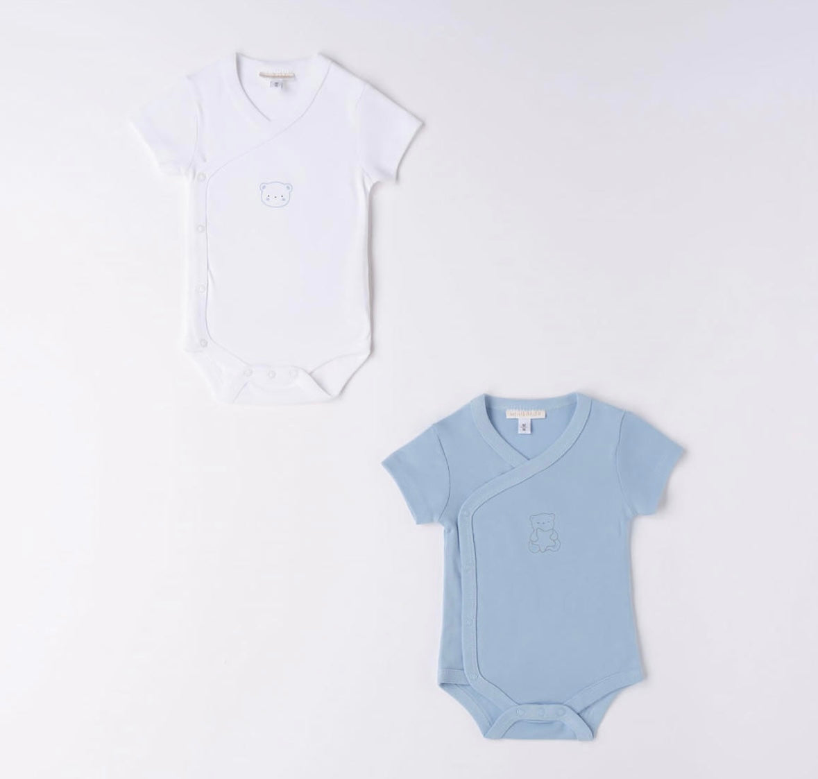 Coppia di Body 100% cotone Neonato mezza manica, realizzato con apertura laterale e nell’interno coscia per agevolare la vestibilità.