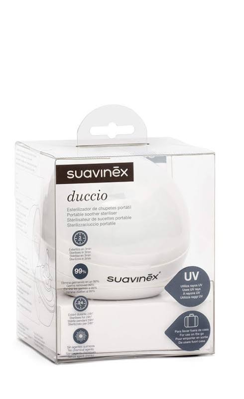 Questo sterilizzatore portatile è perfetto per viaggiare o per l'uso a casa e funziona utilizzando una lampada UV, che sterilizza il 99% dei germi e delle batterie. Cavità centrale compatibile con qualsiasi tipo di ciuccio. Sterilizzare in soli 3 minuti e per 24 ore. Con indicatore luminoso e acustico che avverte che la sterilizzazione è terminata. Funziona collegato alla rete o processo batterie.