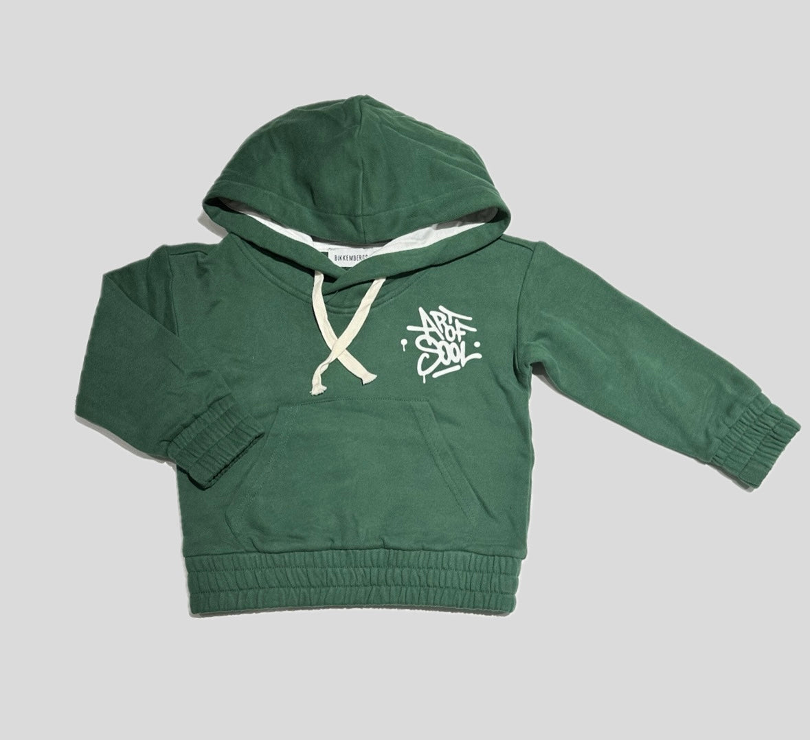 Felpa Bikkembergs Bambino, unica variante di colore Verde, realizzata con tascone sul davanti, logo laterale in contrasto di colore, cappuccio, vestibilità regolare.